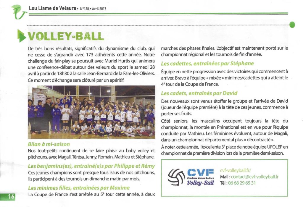 CVFVB dans Lou Liame de VelaursBillet publié dans Fair Play Le Sport pour Valeur Presse le 01/04/2017 par Frederic WebMaster