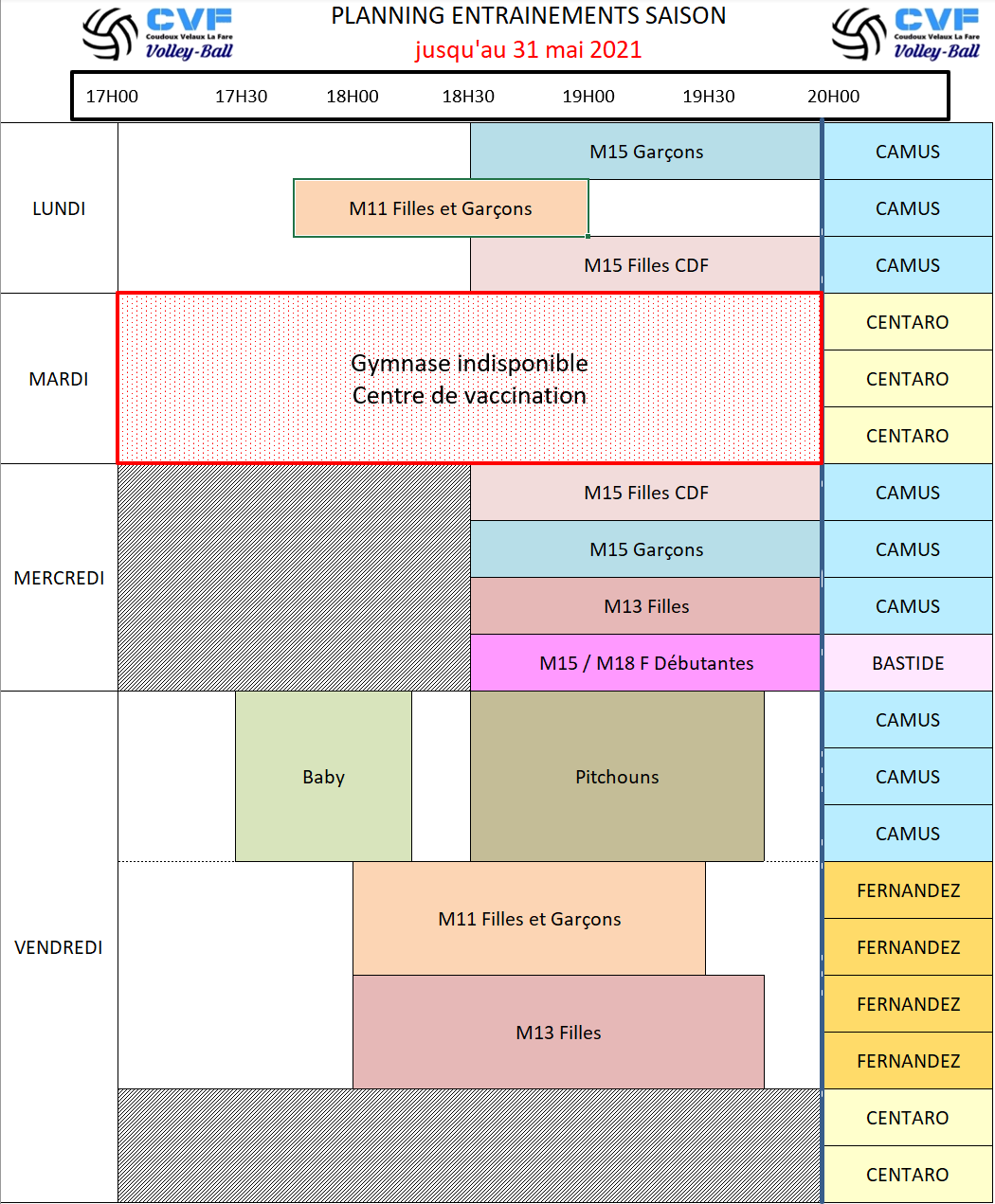 Voici le nouveau planning des entrainements jeunes pour cette reprise en intérieur: